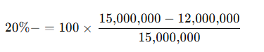 برای مثال، اگر سرمایه ای از 15 میلیون تومان به 12 میلیون تومان کاهش یابد، دراودان به صورت زیر محاسبه می شود: