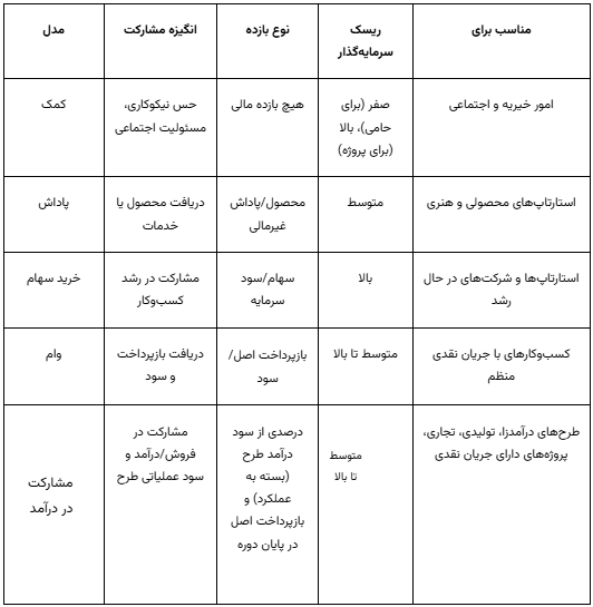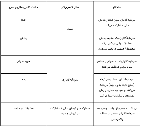 در ادامه به انواع مدلها تامین مالی جمعی خواهیم پرداخت:
