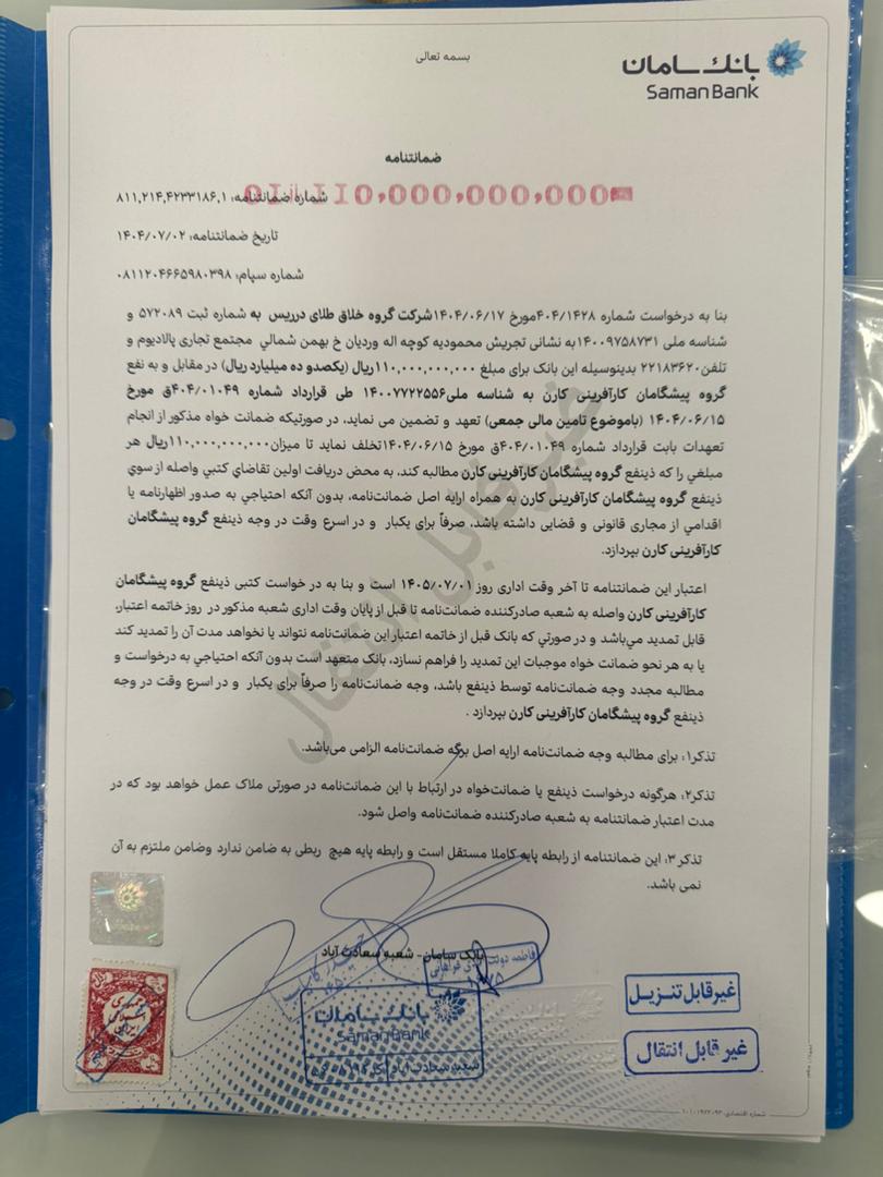 - نام نهاد مالی: کارگزاری بانک کارآفرین