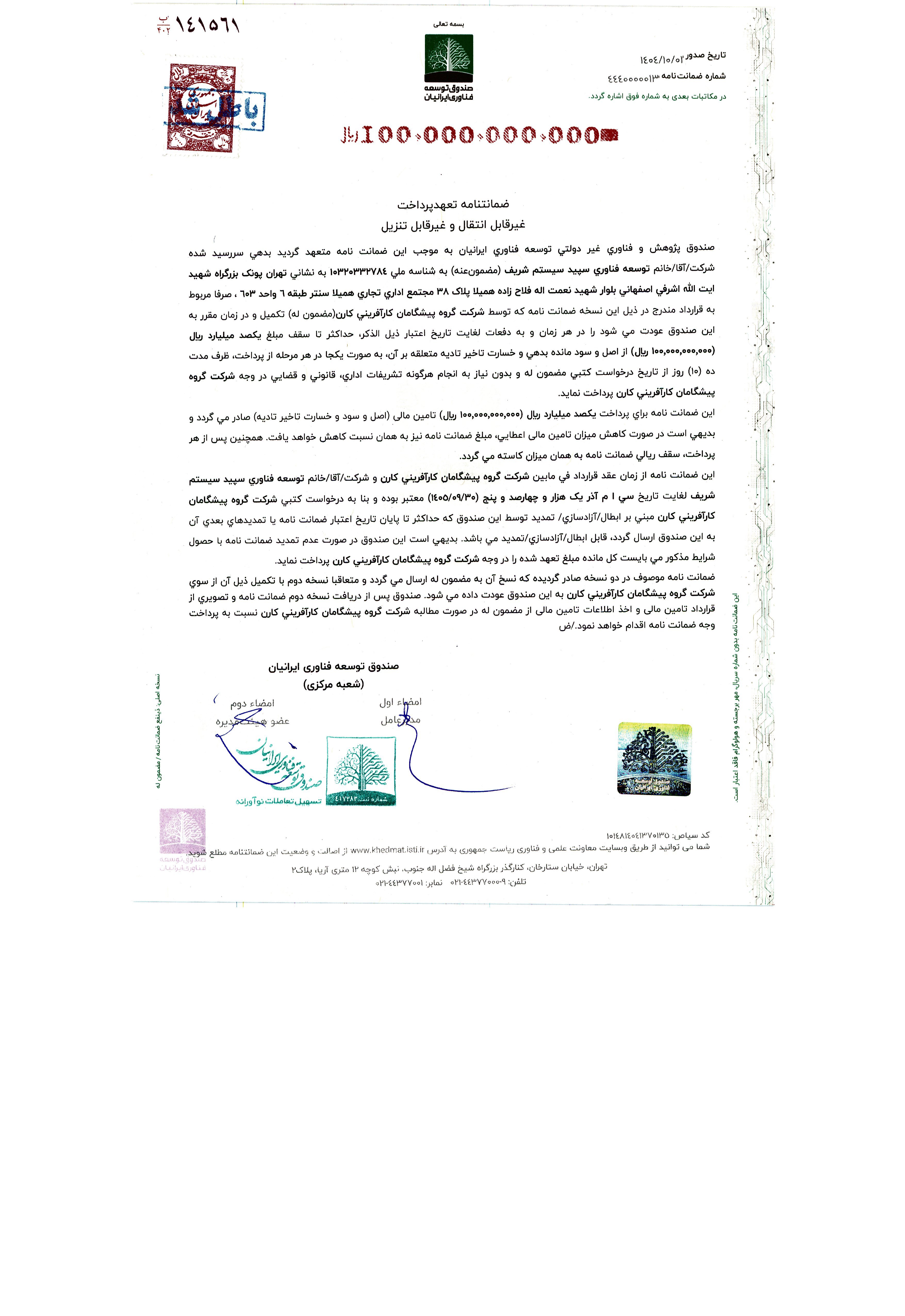 بدون تضمین سود و با تضمین ضمانتنامه تعهد پرداخت صندوق پژوهش و فناوری برای اصل سرمایه