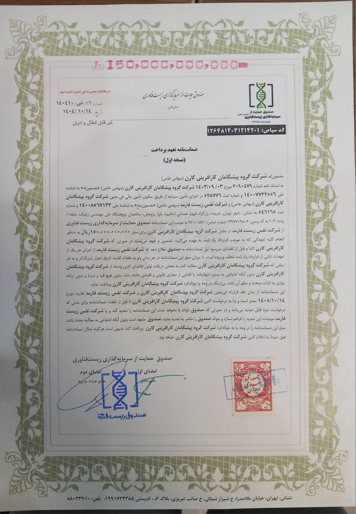 بدون تضمین سود و با تضمین ضمانتنامه تعهد پرداخت صندوق پژوهش و فناوری برای اصل سرمایه